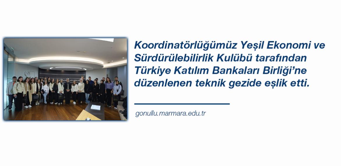 1 Ekim Çarşamba günü Marmara Üniversitesi Yeşil Ekonomi ve Sürdürülebilirlik Kulübü öğrencileriyle Türkiye Katılım Bankaları Birliği’ne düzenlenen teknik geziye Prof.Dr. Esra Yüksel Acı da eşlik etti.
