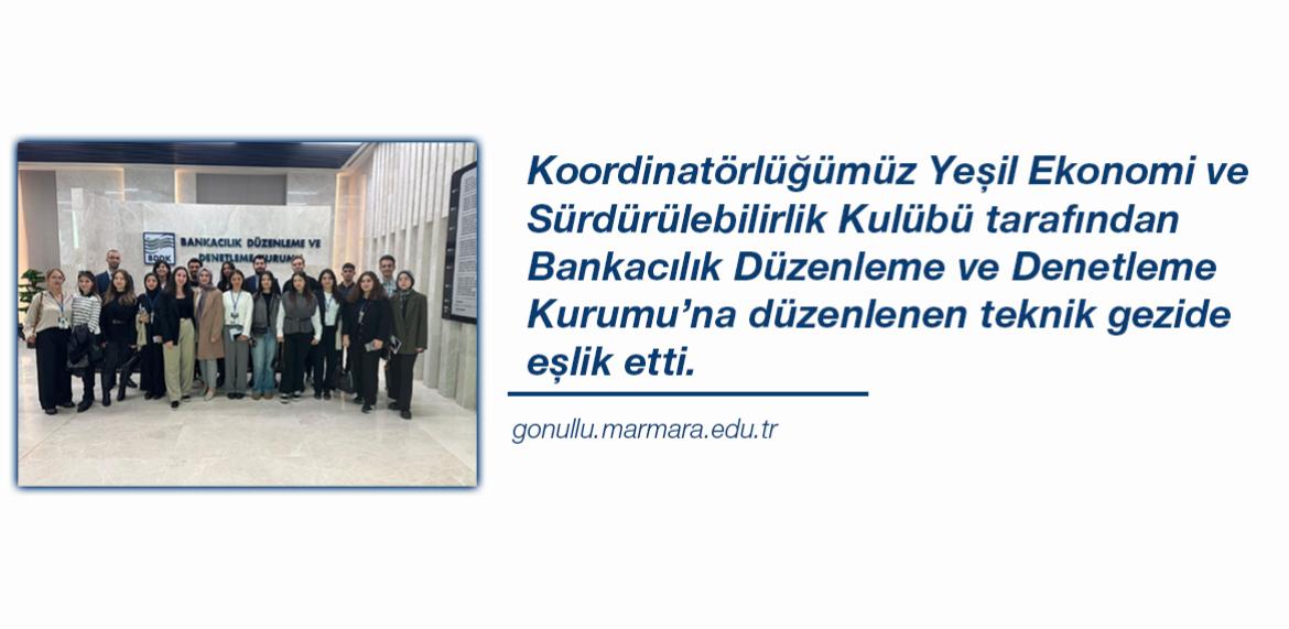 8 Ekim Çarşamba günü Marmara Üniversitesi Yeşil Ekonomi ve Sürdürülebilirlik Kulübü öğrencileriyle Bankacılık Düzenleme ve Denetleme Kurumu’na düzenlenen teknik geziye Prof.Dr. Esra Yüksel Acı da eşlik etti.